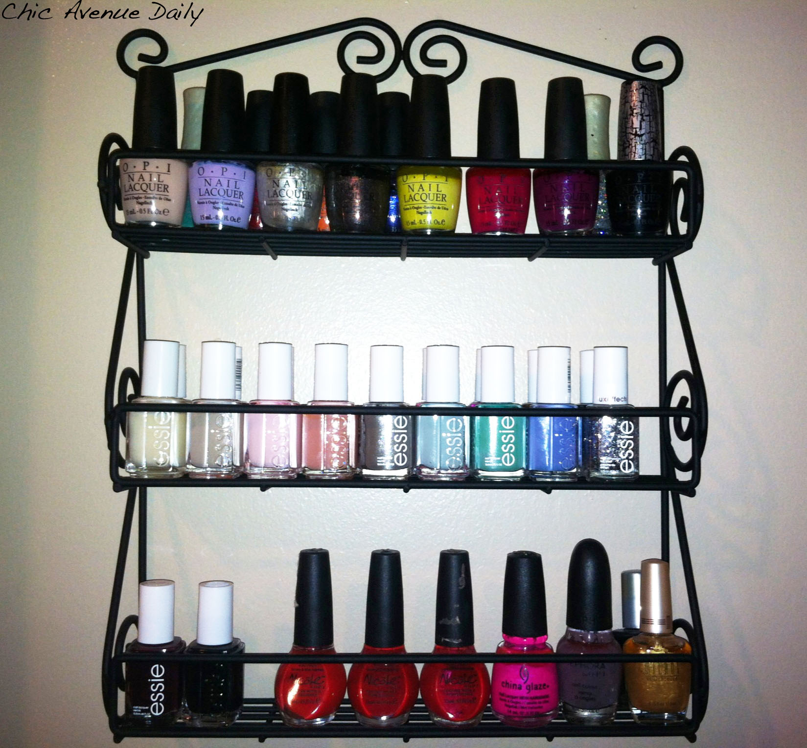 My love of nail polishes runs deep. I thoroughly enjoy selecting new colors to add to my growing collection. A few months ago I did a huge cleanup of all my old polishes and decided I needed a rack to keep all of them organized. As I looked online I didn’t like the clear plastic ones they were selling that looked like the kind in nail salons. A friend of mine suggested I check Amazon as she had recently found one there herself. She told me it was actually a really pretty spice rack that she decided to use as a nail polish rack instead. So I checked it out, adored it and decided to get one too! Β I’m actually thinking of probably getting another 1 or 2 more as I’m constantly buying new colors every 2 weeks. Each shelf on this rack allows for about 2 rows of polishes. It might look small, but it holds a lot, it’s sturdy and you can mount it on your wall for easy display. I like to keep the polishes in order by brand and color (from lightest to darkest).