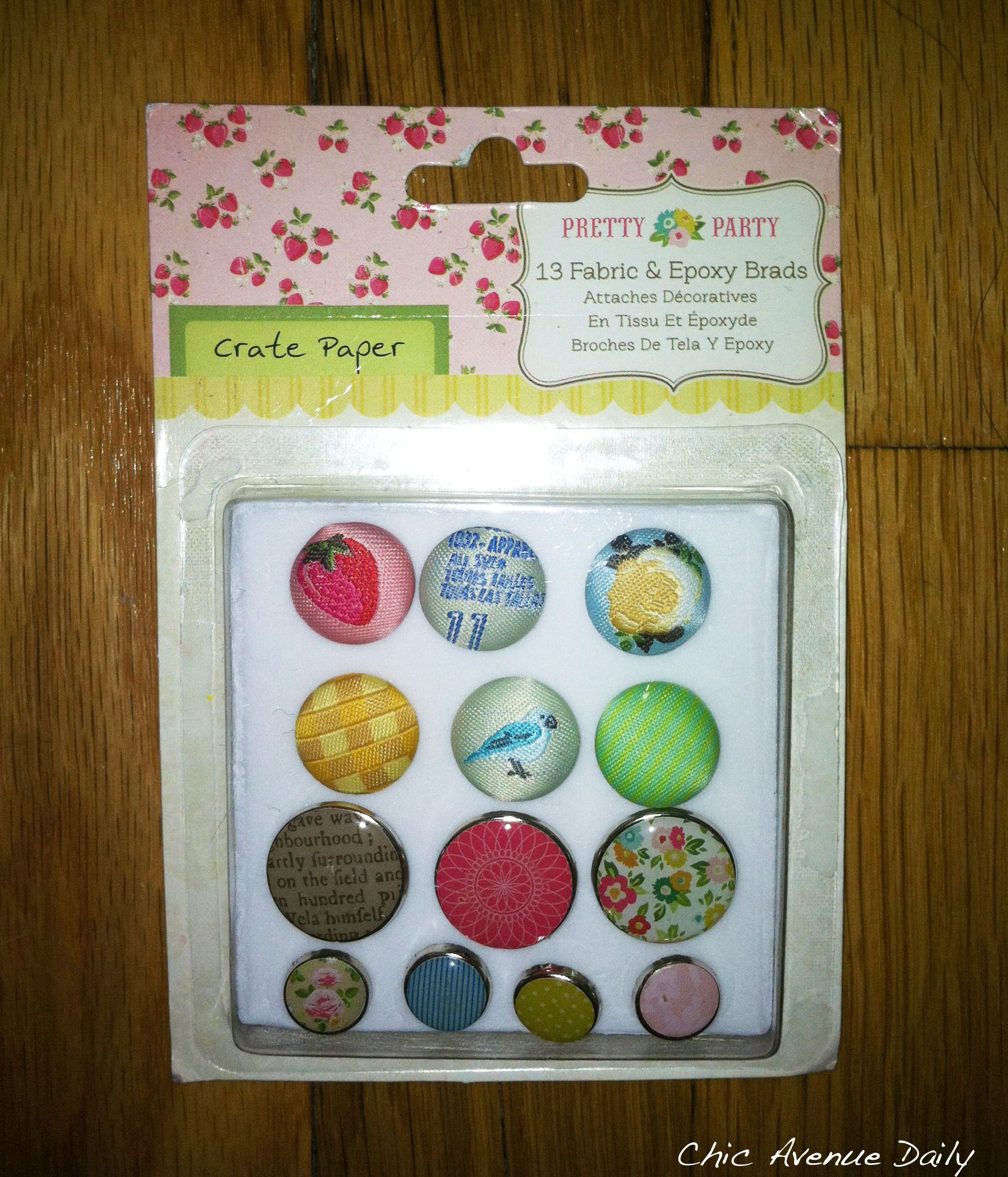 4. Marshall’s – “Pretty Party 13 Fabric & Epoxy Brads” (Push Pins) – $1.99