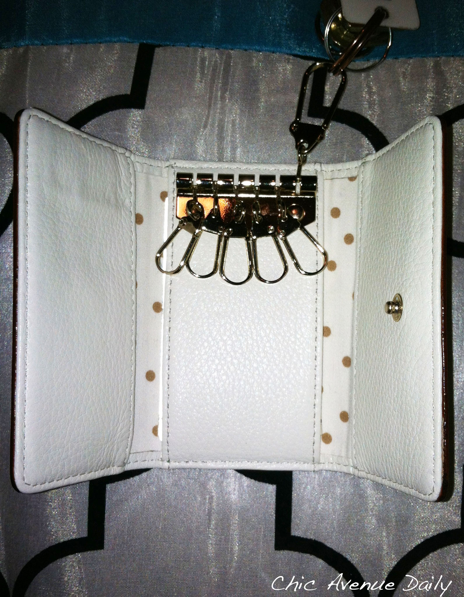 I’m sure that most ladies will agree with me when I say, sometimes I just don’t feel like carrying my big ol’ handbag with me when I go out, especially somewhere quick. That’s why I think it’s great we have so many options when it comes down to actual bag size and now that summer is fast approaching the less I have to hold on to the better. I have a deep fondness for small leather goods and accessories, I basically collect them! While at T.J.Maxx recently, I picked up the below key/card holder by Kate Spade, the pretty mint color jumped at me almost immediately. I also thought the white leather interior and polka dot lining was fun and whimsical, perfect for sunny days!