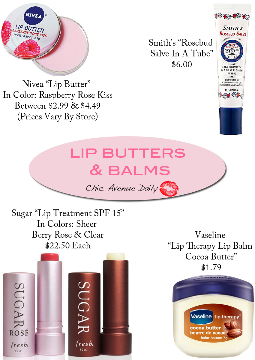 As a girl it is extremely important for me to have soft, kissable lips, especially for my husband lol! I take very good care of my lips by using a scrub 2-3 times a week to remove any dryness and then moisturize with a good lip butter or balm. I like to use these in the morning before applying my lipstick or lipgloss and then again at night before I go to bed. Below are my top 4 butters and balms that I absolutely love and adore! They have always worked for me and left my lips feeling luxurious! Β And the great thing is that they are available at your local Sephora, Ulta, Walgreens or Drugstore Chain. Tender and smooth lips are now at your easy disposal!