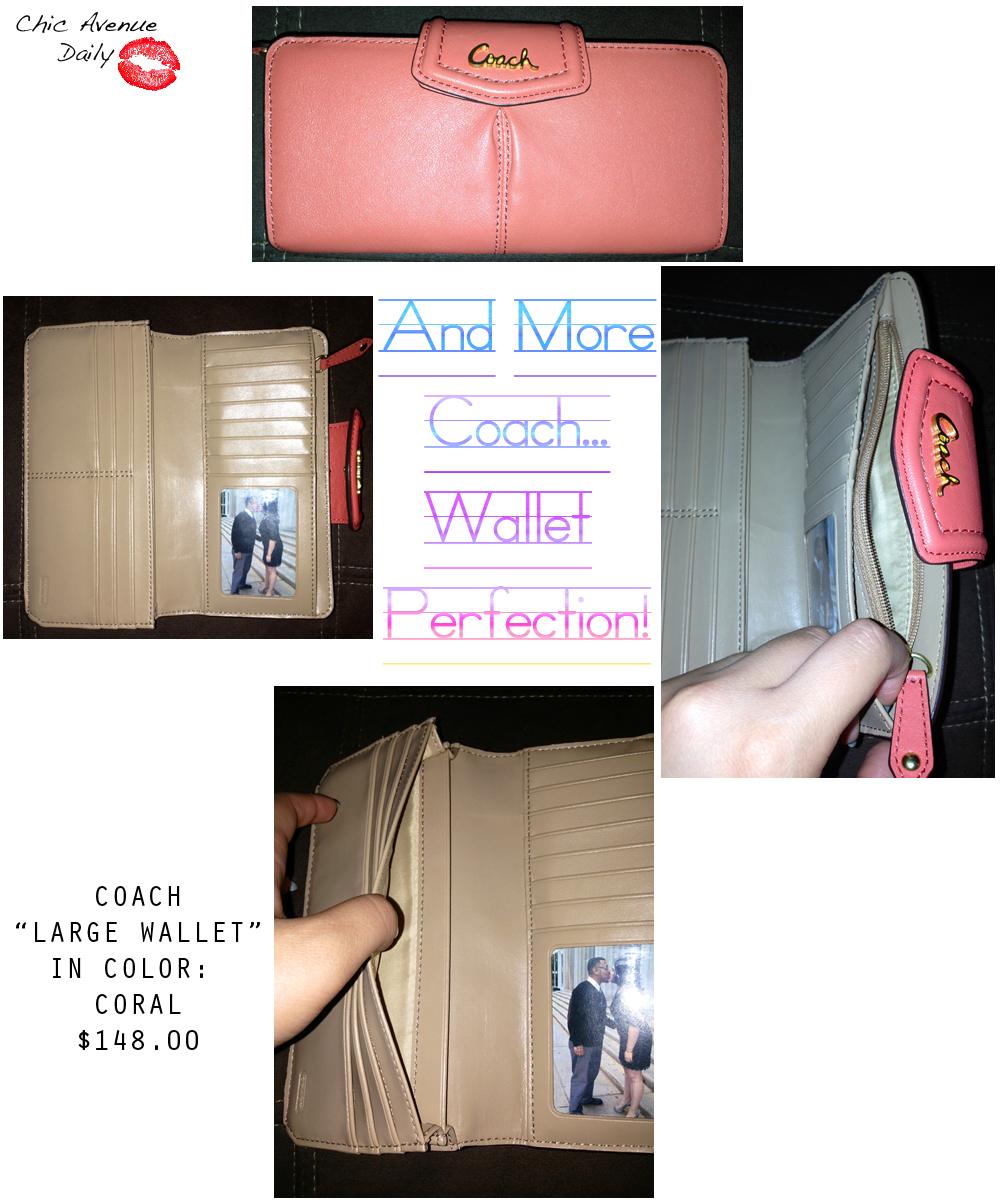 As you can clearly see from previous posts, I am a huge Coach fan. Purses, wallets, wristlets & coin holders, you name it and I probably own it! I just can’t help myself when it comes to this brand because their craftsmanship is excellent and everything I’ve ever purchased from them has lasted me years beyond years. Not to mention, the quality of their leathers is always top notch! I grew up loving Coach since I was a toddler playing dress up with my mom’s bags lol! Adding to the ever growing collection is the below wallet. I actually bought it off my mom who recently found this gem during one of her shopping excursions to Marshall’s. It was love at first sight because of how large and spacious it was. The wallet color and interior is what instantly sold me. If you’re like me, you carry your life in your wallet. And because of this, it is imperative that you have enough room to fit all the daily essentials like money, credit cards, identification, documentation, receipts and a photo of your choice. This puppy simply fits the bill, literally in every aspect! TIP: Investing in good quality small leather goods can pay off in the long run because of their duration when well taken care of. So when you can and have a little extra to spend, bite the bullet and purchase quality over worrying about the price tag.
