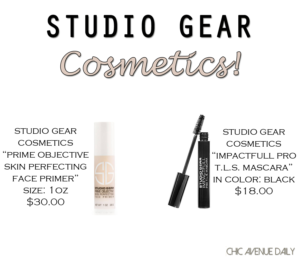 I was recently sent two sample sized products to review by Studio Gear Cosmetics. I came to hear about them through some of my favorite Beauty Bloggers/You Tube Beauty Vloggers and was very excited to get the below items to try out and give you all my initial first impression! The primer and mascara I received seem to be two of their top selling items. I must say, I was not disappointed at all with either product! They really have something good going here and I’m so happy I’ve gotten this opportunity to share my thoughts with you on Studio Gear. Here’s hoping you feel the same as I do if you decide to invest in their cosmetics! Scroll down for reviews on each product after reading more about the brand!