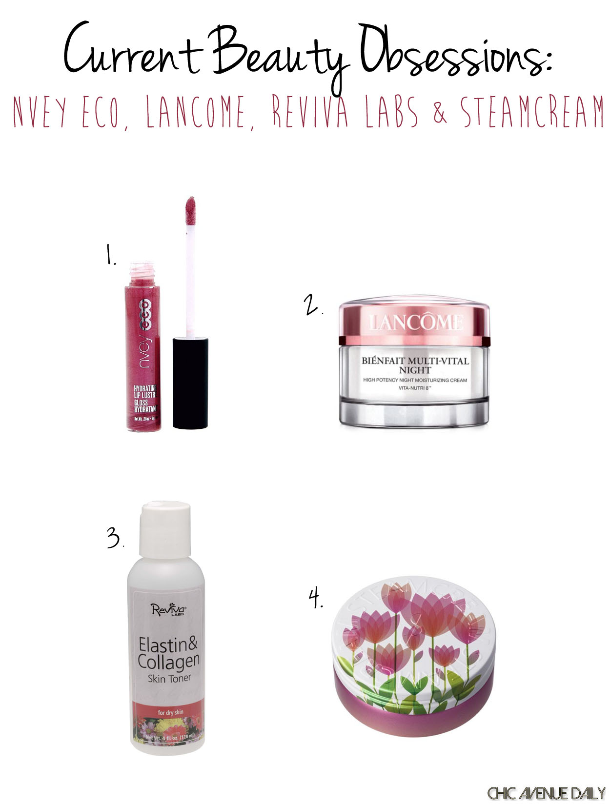 4 thoughts on “Current Beauty Obsessions: Nvey Eco, Lancome, Reviva Labs & Steamcream…