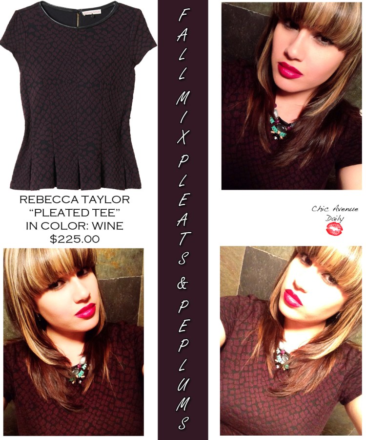 From my earlier posts you can clearly see I’m just a little bit obsessed with peplum tops! I’m literally fascinated by them. I’ve gotten about 4 tops from my job with this detail and the below is one of them. The Rebecca Taylor “Pleated Tee” has become my “it” item and wardrobe staple for Fall. […]